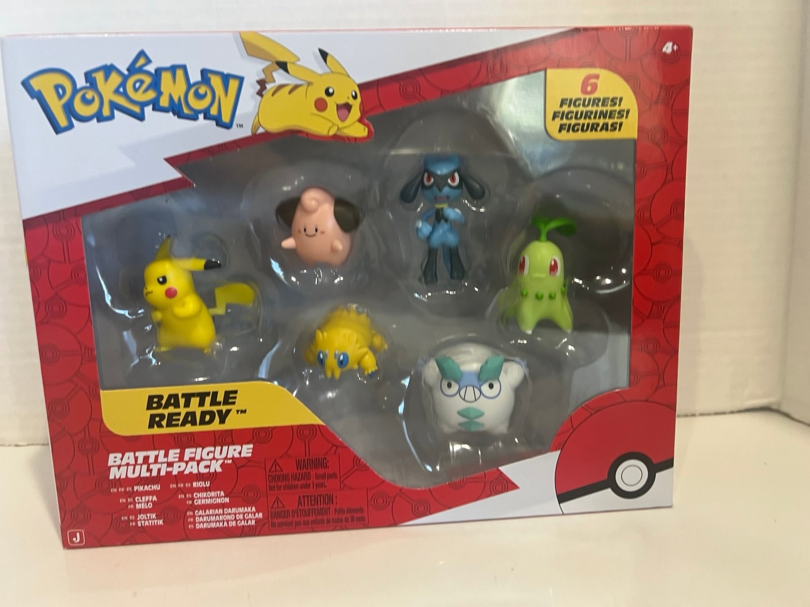 Contains 6 figures: Pikachu, Riolu, Cleffa, Chikorita, Joltik, Galarian, Darumaka