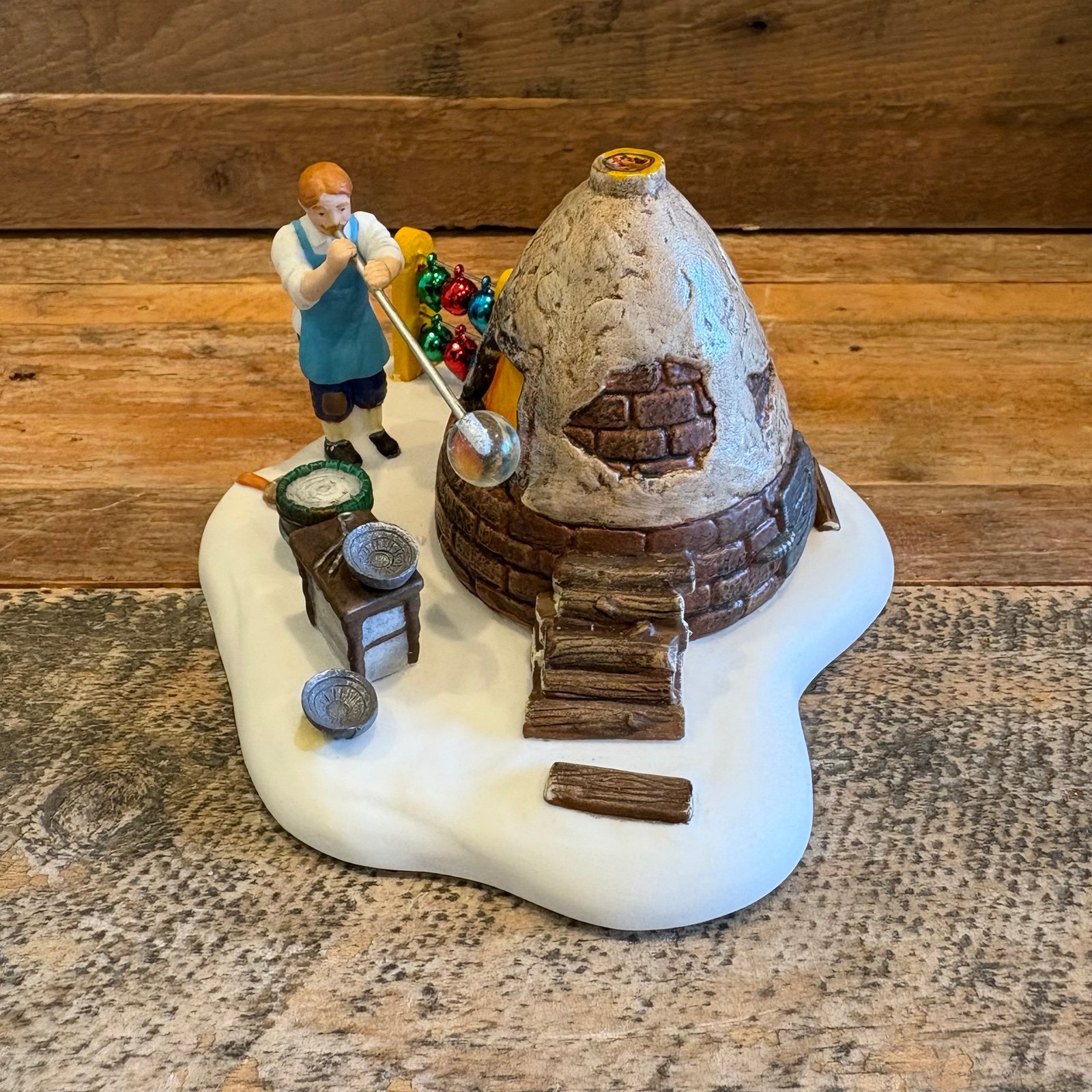 The only defect noted on this piece is what appears to be an aged glue spot on the snow in front of the silver bowl. This appears to be a manufacturing defect to me. Other than the glue spot, the piece is in excellent condition with no damage noted.